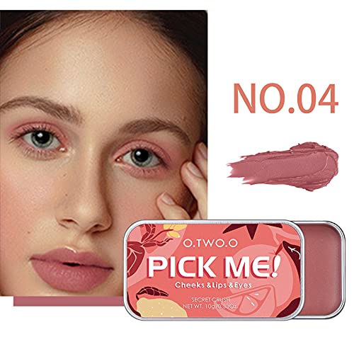 O.TWO.O 3-in-1 Lipstick Eye Shadow Repairing Rouge Pure Peach Contouring Blusher Cream Blush Cheek Rouge Face Contour Cheek Face Make-up Cosmetics (04#Raspberry)