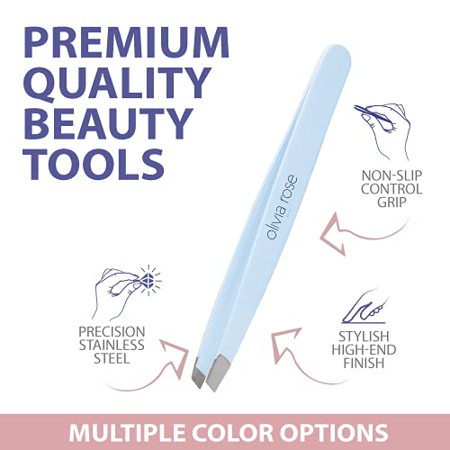 Olivia Rose Tweezer Set 4-Piece Skilled Tweezers for Girls/Males, Nice Precision Hair Tweezers for Eyebrows/Facial Hair Removing/Ingrown Hairs/Splinter/Tick Remover Gray,Gentle Blue,Lavender,Black