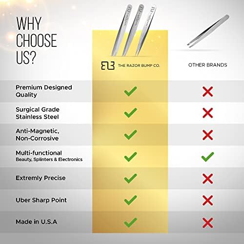 TWEEZE WITH EASE utilizing these skilled tweezers from The Razor Bump Firm. Handcrafted and precision-ground for accuracy, our sharp tweezers guarantee flawless grooming of brows and facial hair.