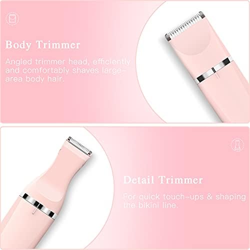 Rechargeable Bikini Trimmer for Ladies – 2 in 1 Electrical Woman Clipper Pubic Hair Groomer Painless Hair Elimination Razor Physique Shaver with 2 Trimmer Heads, IPX7 Waterproof Moist and Dry Use, Pink