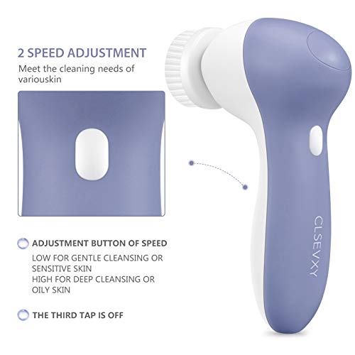 Rechargeable Facial Cleaning Spin Brush Set with 7 Interchangeable Brush Heads – Waterproof Face Spa System by CLSEVXY – Superior Microdermabrasion for Light Exfoliation and Deep Scrubbing(Purple)