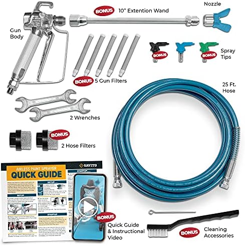 ✅ 𝐇𝐢𝐠𝐡 𝐐𝐮𝐚𝐥𝐢𝐭𝐲 & 𝐌𝐮𝐥𝐭𝐢𝐩𝐥𝐞 𝐅𝐮𝐧𝐜𝐭𝐢𝐨𝐧𝐬 – Our Airless paint sprayer has ft which are aluminum higher than different manufacturers which are plastic. Savito paint sprayer has Max move charge GPM is 0.37 rivals is simply 0.27. HVLP paint sprayer is oil-less, don’t want piston lubricant or pump armor after each use ours would not want this.
