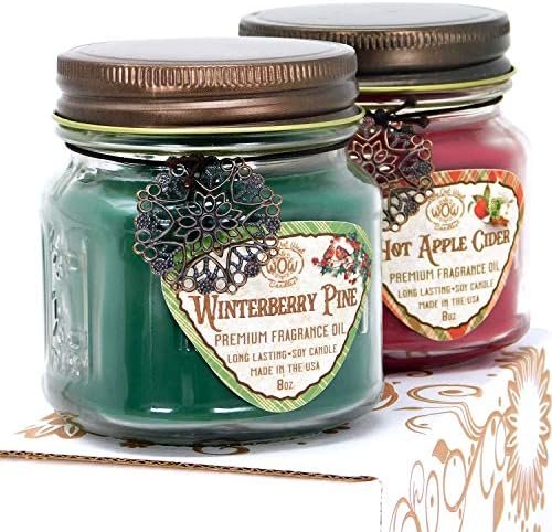 Scented Candles (2-Pack) with Sizzling Apple Cider and Winterberry Pine – Jar Candles Present Units – Nice Winter and Vacation Candles- Pure Soy Wax with Premium Perfume Oil – Made in USA