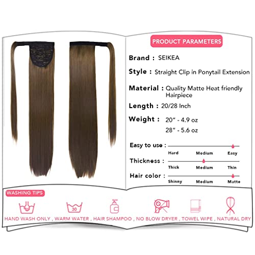 SEIKEA Clip in Ponytail Extension Wrap Round Straight Hair for Girls (28″, Gentle Chocolate Brown)
