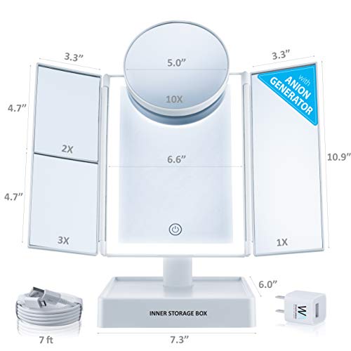 true WONDER MIRROR as a result of with AirVitamin Anions + Huge 10x Magnification Suction Mirror Already w Charger + Lengthy 7 ft Wire Lighted Vainness Make-up Mirror w/ Dimmable Led lights and inside Storage Base
