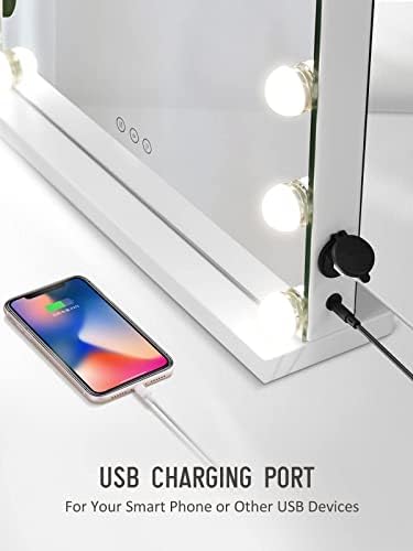 Vainness Mirror Make-up Mirror with Lights, Giant Hollywood Lighted Make-up Mirror with 18 Dimmable LED Bulbs, 3 Colour Lighting Modes, USB Charging Port, Sensible Contact Management, L23 X W19 Inch