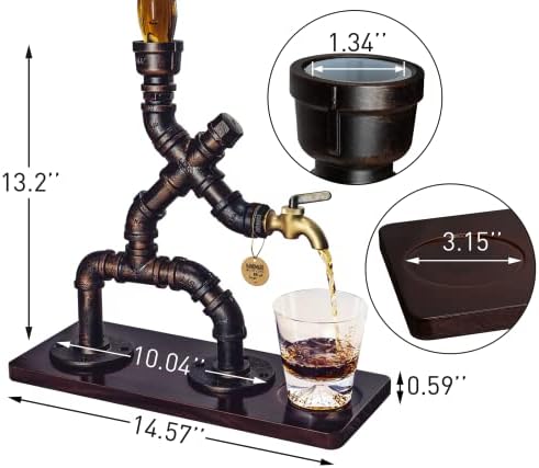 Vida Brillante Handcrafted Liquor Dispenser- Steampunk Pipe Decor, Industrial Whiskey Holder, Rustic Fashion, Bar Equipment For Residence Bar Artwork (1 Bottle) (Brown)