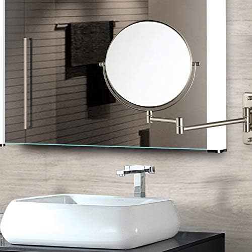 Wall Mounted Make-up Mirror – 10x Magnification 8” Two-Sided Swivel Extendable Lavatory Mirror Nickel End ALHAKIN