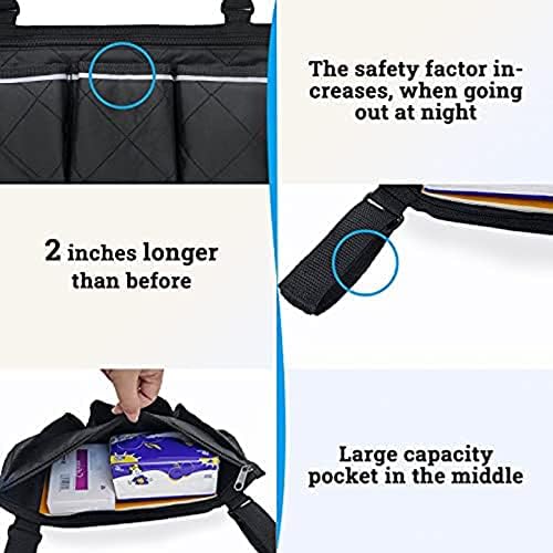 YGYQZ Wheelchair Armrest Equipment, Facet Luggage to Dangle on Facet with Shiny Line Waterproof Black Walker Storage Pouches Fathers Moms Day Presents for Residence/Outside/Child Cart (Black Facet)