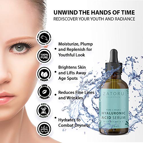 Zatoru Hyaluronic Acid Serum with Vitamin C for Face and Pores and skin – 100% Pure Natural Vegan Anti-aging Moisturizer Pores and skin Take care of Ladies and Males – Hydrates Brightens Protects – Medical Professional Method – 1 oz